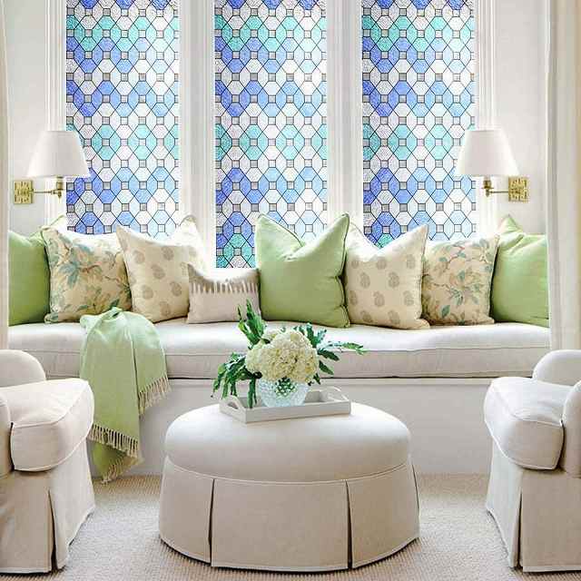 貼るだけで ステンドグラス モザイク柄 3D窓用 フィルム 窓 めかくしシート 目隠し 遮光 断熱 日よけ 風呂 浴室 モザイクガラス 断熱シート 結露防止シート シート シール すりガラス 貼ってはがせる 窓に貼るカーテン 外から見えない おしゃれ (90 x 200cm)