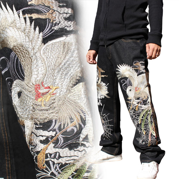 和柄 ジーンズ 和柄 デニム 和柄ジーンズ 和柄ジーパン【B220102】極鳳凰 和柄刺繍ジーンズ 和柄メンズ ボンタン特攻服