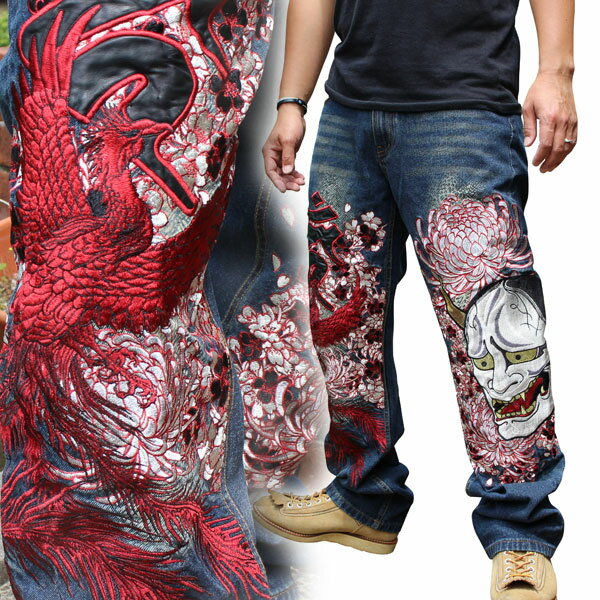 和柄 ジーンズ 和柄 デニム 和柄ジーンズ 和柄ジーパン【B220104】般若鳳凰 和柄刺繍ジーンズ 和柄メンズ ボンタン特攻服