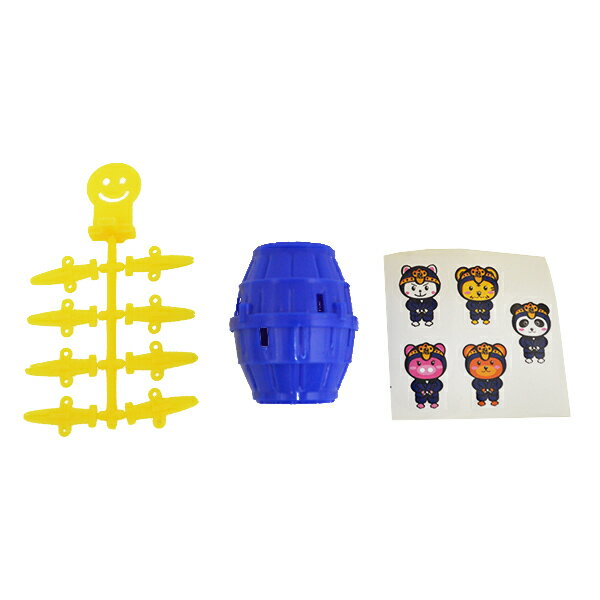 忍者が飛び出すよ!!ハラハラ、ドキドキ、順番にナイフをタルにさしていこう!!!【本体サイズ(樽)】約4.8×4×4cm【パッケージサイズ】約14.5×11×4.5cm【材質】PP【個装形態】OPPヘッダー付袋【対象年齢】6歳以上